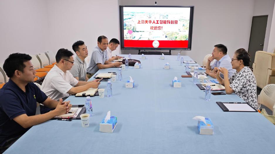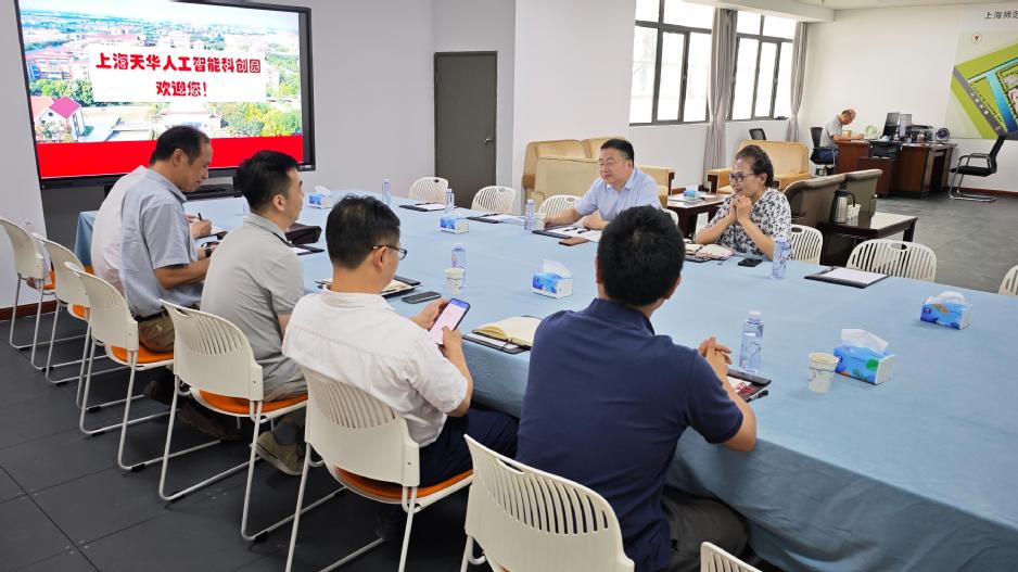 2025年9月9日下午,上海留学生企业协会会长闻振翩、上海留学生企业协会秘书长李萍一行到访上海天华人工智能科创园,考察调研园区建设和发展。嘉定高科技园区总经理陈明龙、招商专员顾宇霆,天华学院副总校监朱国权,副校长凌旭峰,东校区管理办公室主任周建文参加交流座谈。